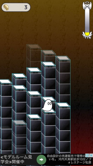 うっかりタイミングを間違えたり、1度でも違った場所でタップをしてしまうとおばけは落下、ゲームオーバーとなります。