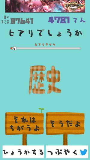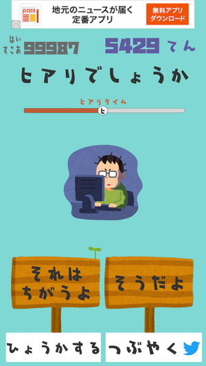 「ヒアリでしょうか」ではヒアリタイムがあり、ヒアリタイムのゲージがいっぱいになる前に答えなければいけません。