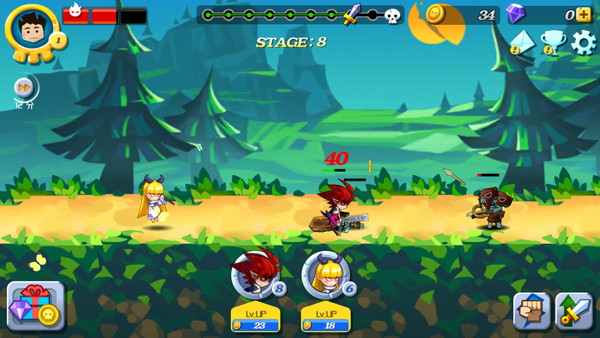 ゲームを起動しなくても勝手にゴールドが貯まり、攻撃は自動で行われるので、敵をどんどん倒してステージを進み、キャラクターや武器を強化していきましょう。