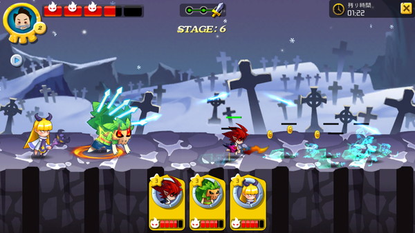 基本のパーティーは近距離タイプの剣士や、空中の敵を攻撃する槍兵、魔術で広い範囲に攻撃する魔術師、ゴールドを稼ぐペンギンで構成され、それぞれ役割が異なります。