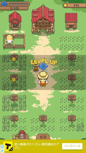 そこからオートで画面右上の小屋に貯蔵されるので、そこに人が買いに来てコインGETという流れで進みます。