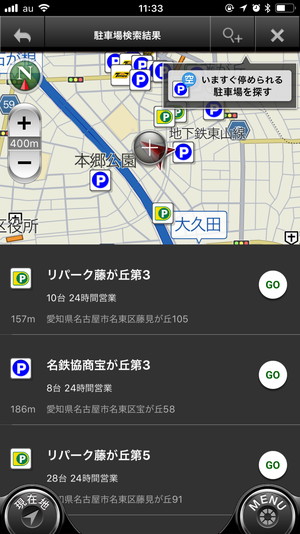 目的地を選択したら、「ここへ行く」ボタンを押すことでカーナビを起動することができます。
