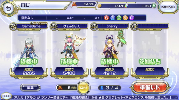 もちろん4人の参加を待って出発することも可能ですし、フレンドとのルームを作成することも可能です。
