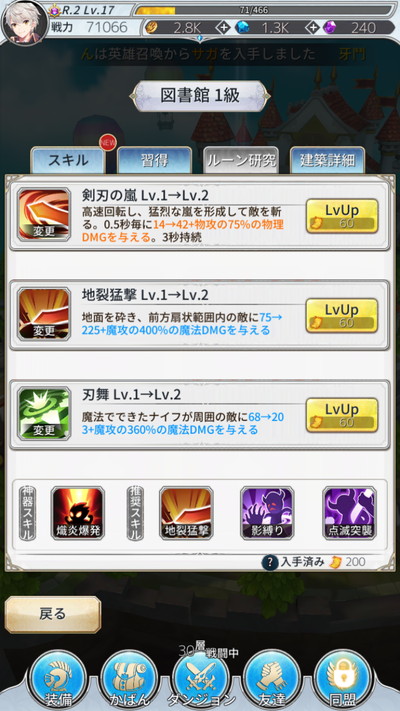 スキルをレベルアップさせるには、図書館自体のレベルを上げていく必要がある。