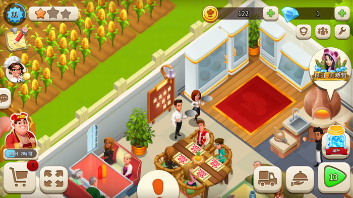 人気レストランのオーナーになり素材集めから運営していく街づくりゲーム