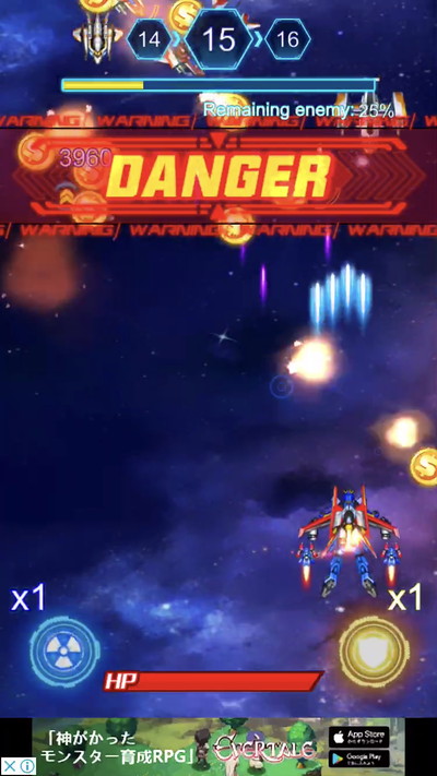 片手で簡単に楽しめる昔懐かしい雰囲気の縦スクロールシューティングゲーム