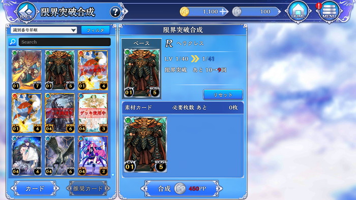 カードを育成するには、戦闘に多く出して経験値を獲得するか他のカードを合成素材に選んで強化する2つの方法があります。