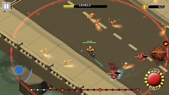 基本操作はバーチャルパッドを用いた移動と画面右のボタンをタップで必殺技を使うだけと簡単です。