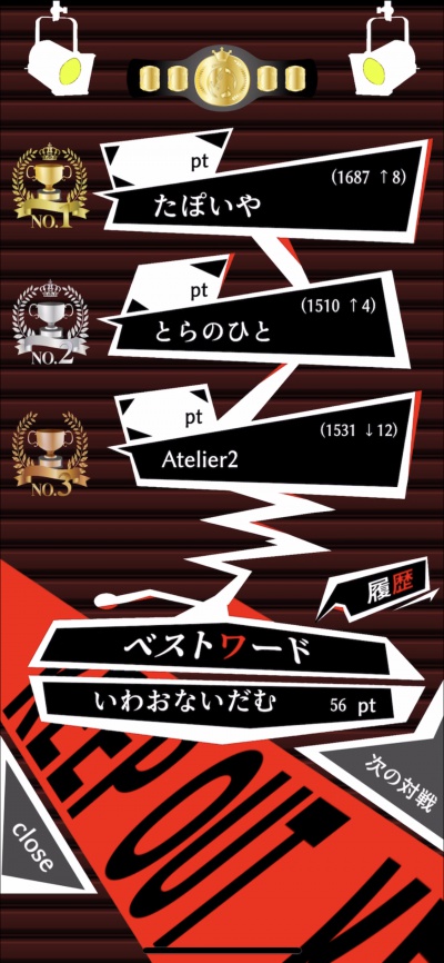 履歴で試合中に使用されたワードをチェックできるので、高得点のワードを覚えておきましょう。