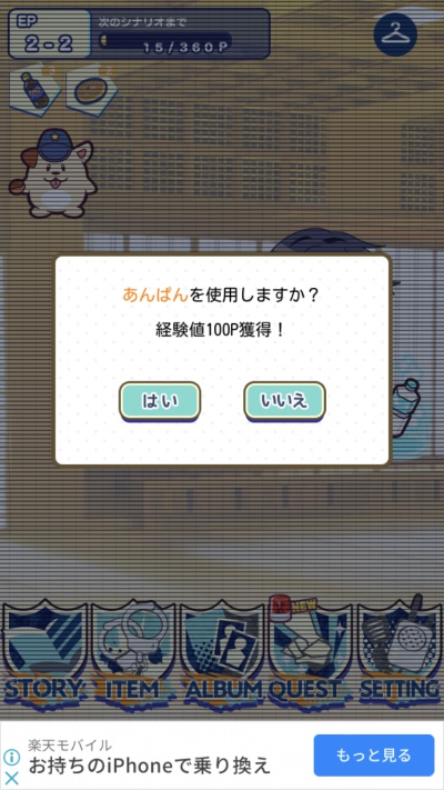 タップするたびに画面左上のポイントが加算され、ゲージが埋まると次のシナリオに進みます。